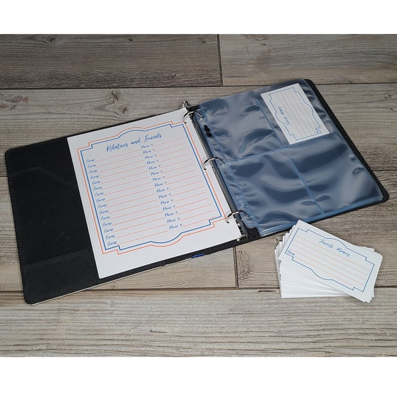 Size: 8" x 10" 3-ring binder.